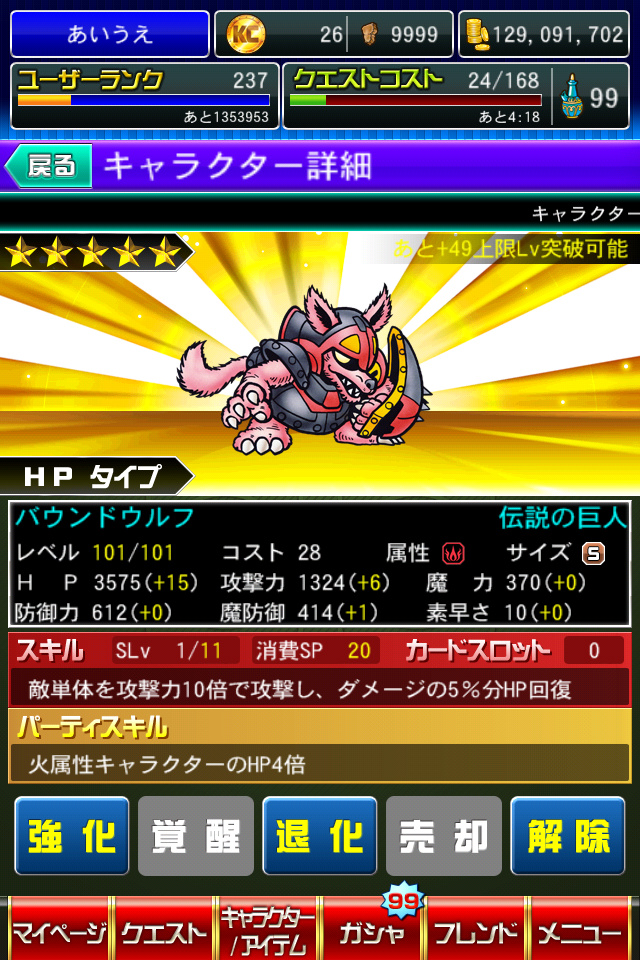 ナイトガンダムパズルヒーローズでのユーザー名:あいうえ