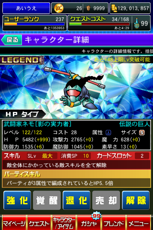 LEGEND覚醒後は「敵全体を攻撃力30倍攻撃+敵全体敵スキル全解除」という
