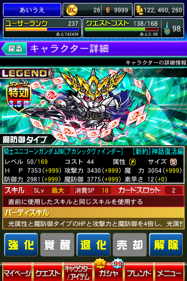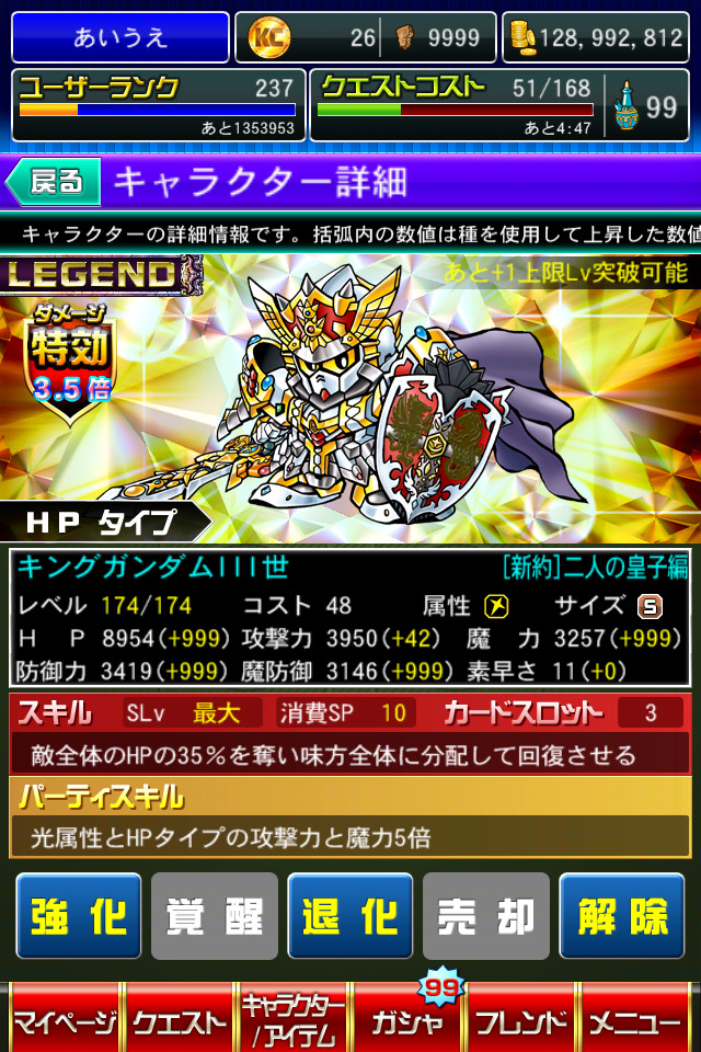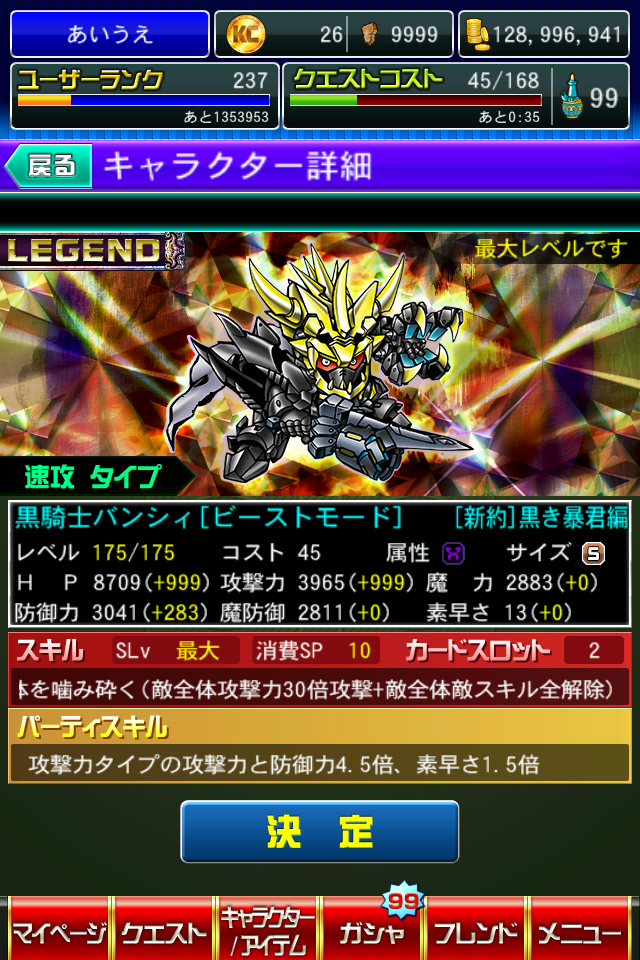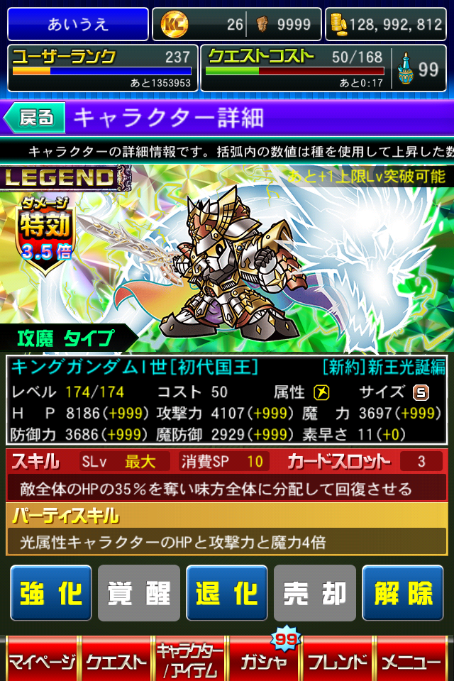 (ナイトガンダムパズルヒーローズにおけるユーザー名は「あいうえ」)