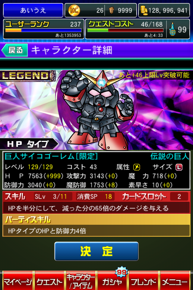 同じようにイベント入手できた巨人サイコゴーレム[限定]は