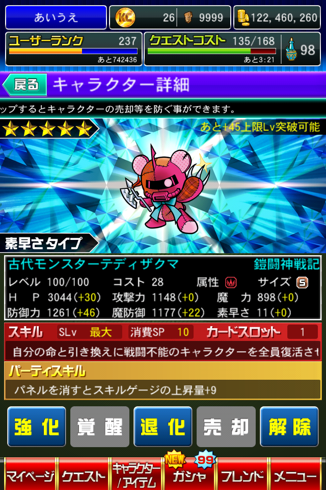 最後までワタクシのパーティ編成の中心格としてはたらいてくれた。